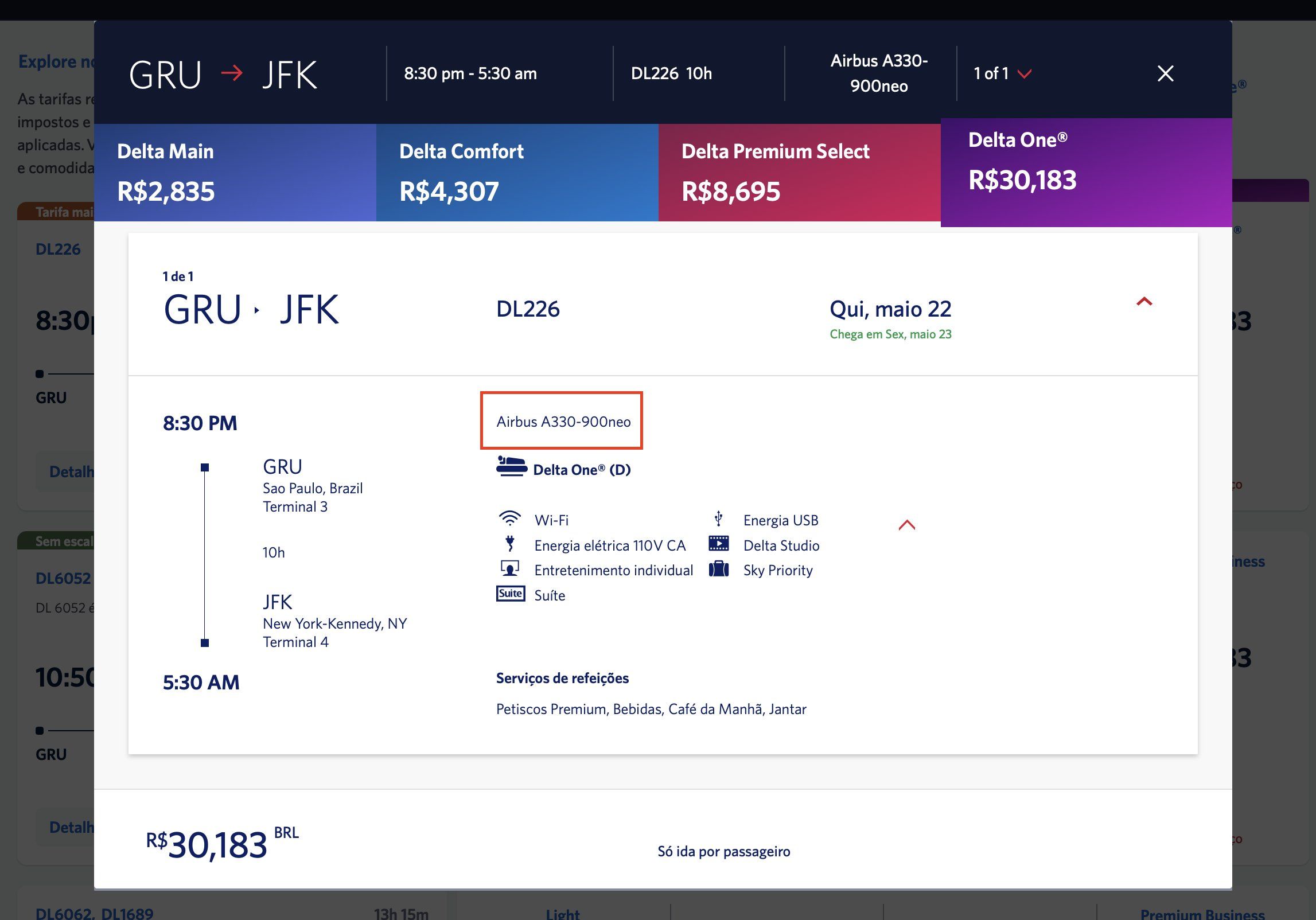 - Delta One, a Classe Executiva da companhia (inalterado);