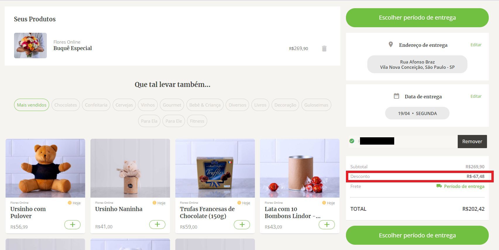 5. Pronto! Aproveite o código de desconto para comprar com seu cartão Elo.