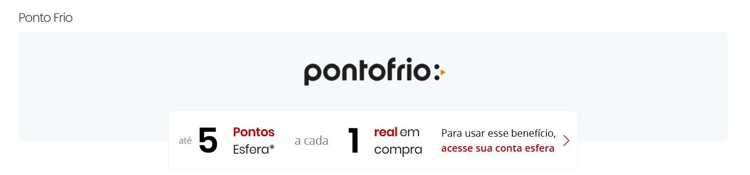A Esfera está oferecendo até 10 pontos por real gasto na Hoteis.com, Pontofrio e mais 2 parceiros. As ofertas têm períodos e condições distintos e contemplam todas as opções de pagamento disponíveis no ato da compra.