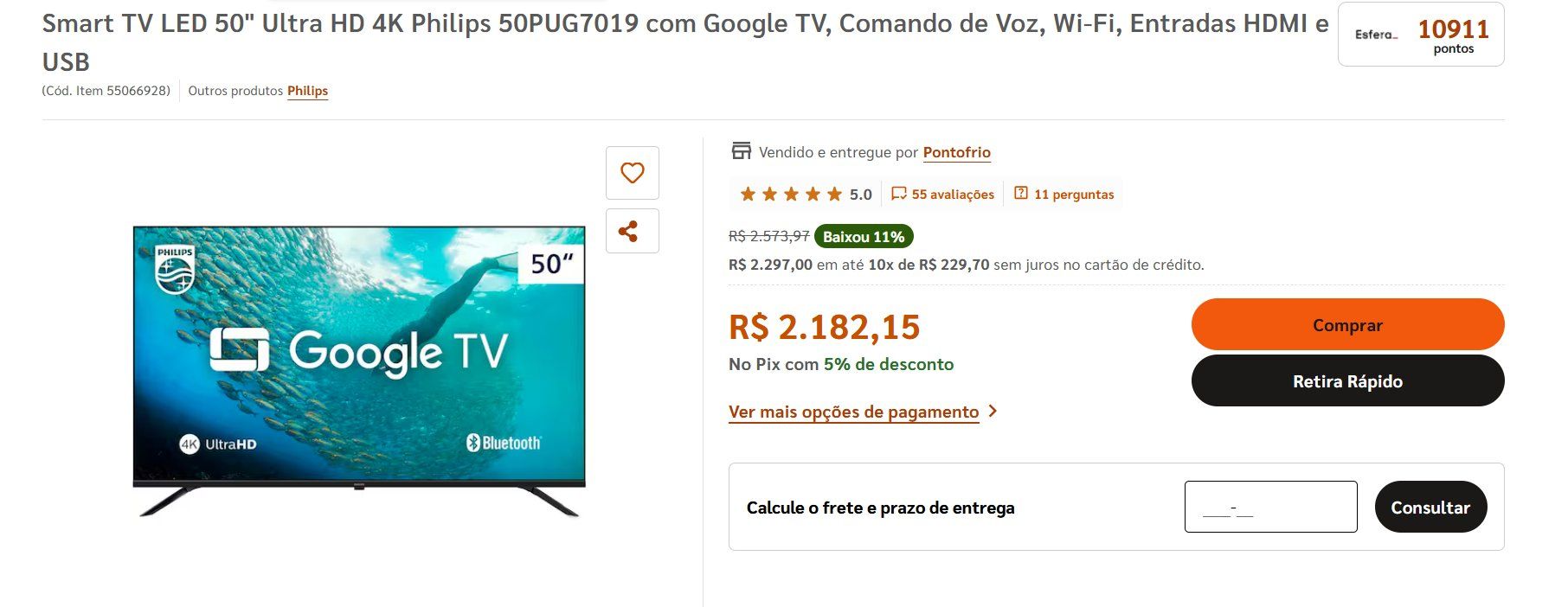 Note que, no Pontofrio, é possível ver a quantidade de pontos que será recebida, ao lado do nome do produto: