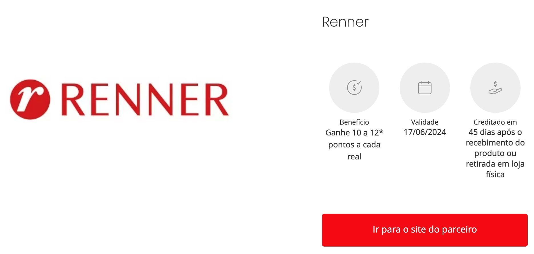 • Renner: até 12 pontos por real – até 17/06/2024 – clique aqui;