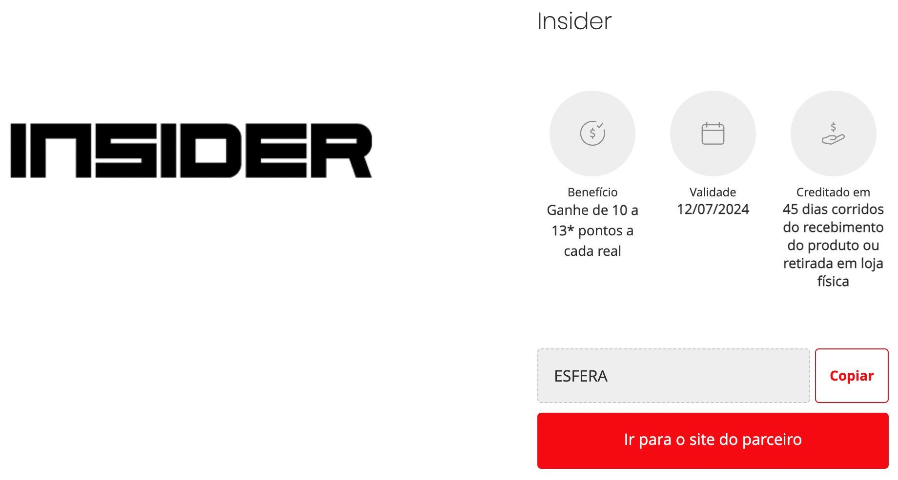 • Insider: até 13 pontos por real – até 12/07/2024 – clique aqui;