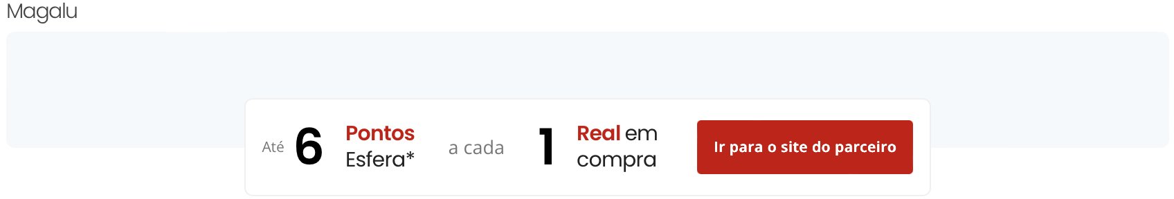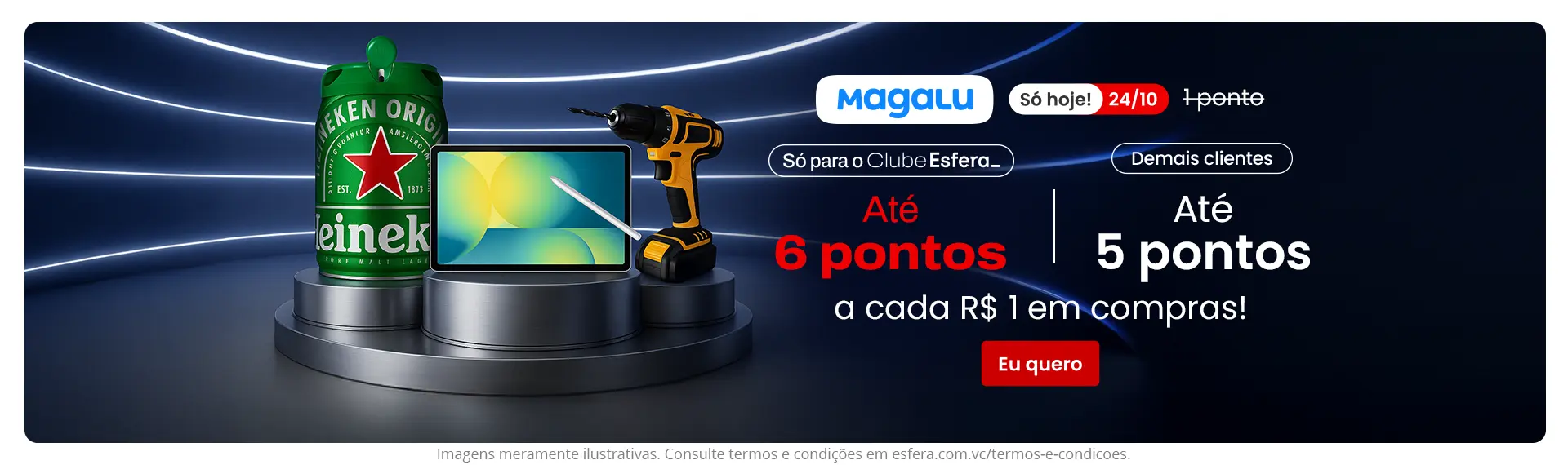 A Esfera está oferecendo até 6 pontos por real gasto no Magalu. A oferta é válida somente hoje (24) e a maior bonificação contempla os produtos vendidos e entregues pela varejista. Confira!