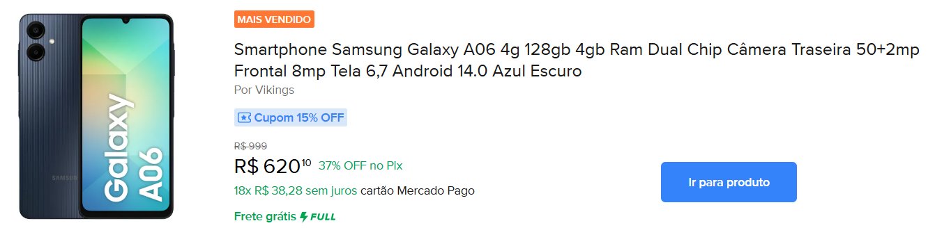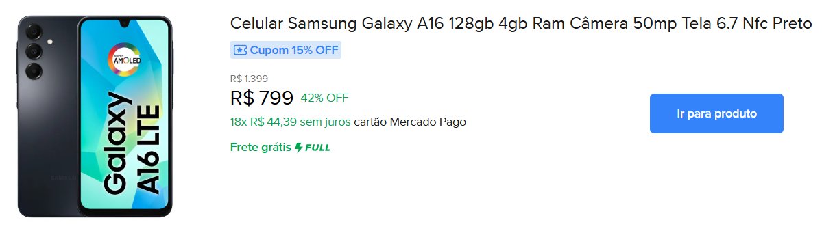 Pensa em aproveitar? Acesse o site do Mercado Livre para ver essa e outras promoções.