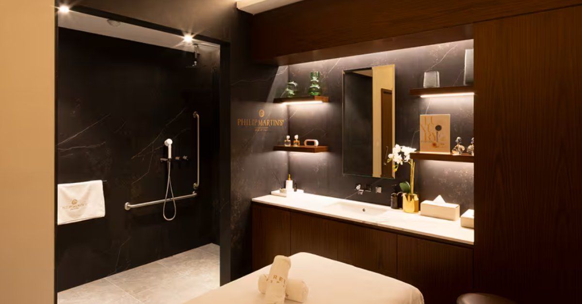 O novo espaço da companhia oferece tratamentos pagos que variam de massagens em cadeiras, massagens em mesas, poltronas de relaxamento, a tratamentos faciais, capilares, manicure, barbearia e até chuveiro infundido com vitamina C.