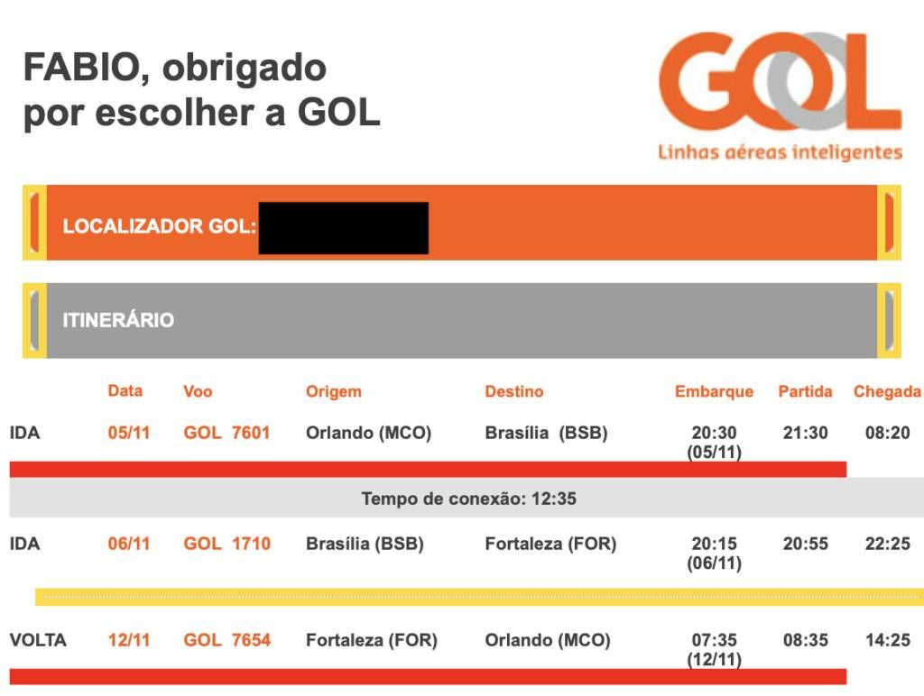 Comprei o bilhete de uma forma que poderia avaliar 2 serviços: primeiro o de Brasília p/ Orlando e o segundo de Fortaleza p/ Orlando, conforme vocês podem ver abaixo.