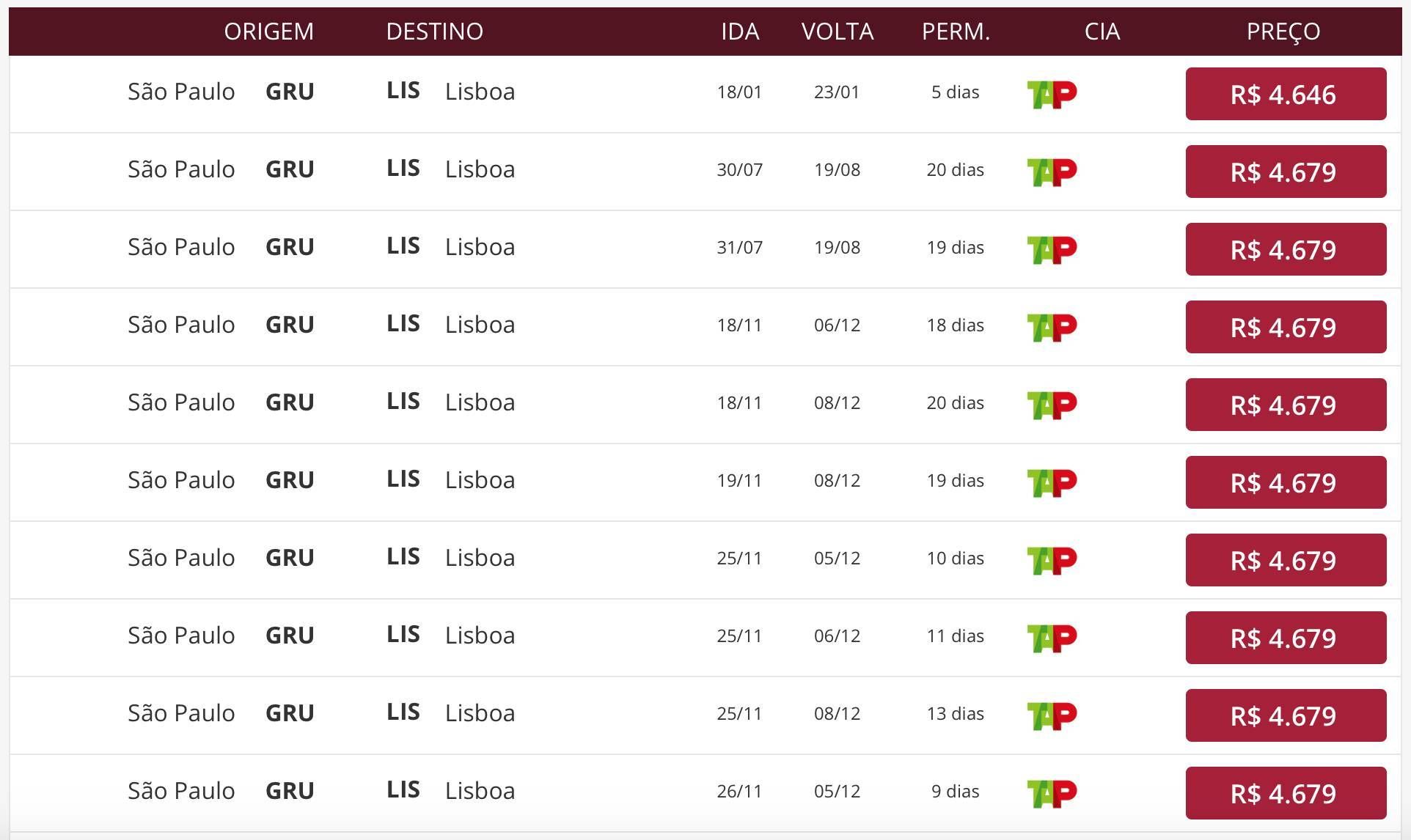 Encontramos passagens para Lisboa em Executiva a partir de R$4.646 ida e volta saindo de São Paulo. Há disponibilidade nos menores valores nos meses de julho e novembro desse ano e janeiro e fevereiro do ano que vem!
