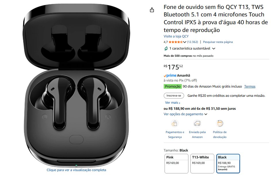 • Fones de Ouvido QCY | 7% de desconto| total R$ 175,52 – compre aqui