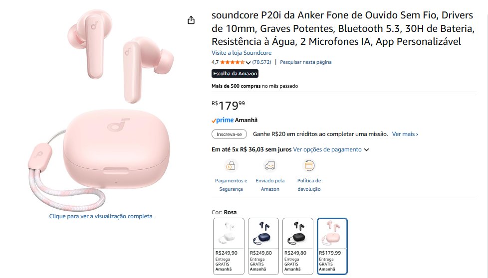• Fones de Ouvido Soundcore P20i | total R$ 179,99 – compre aqui