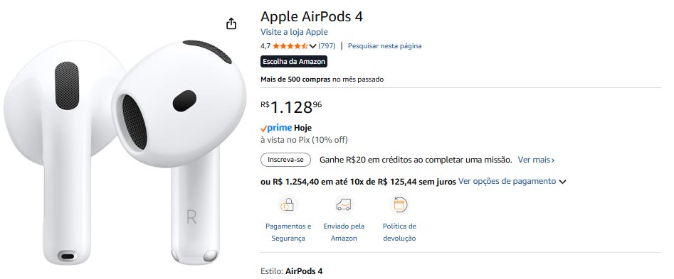 • Apple AirPods 4 | 10% de desconto – total R$ 1.128,96 – compre aqui