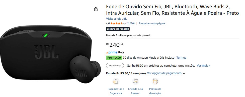 • Fones de Ouvido sem fio JBL |  total R$ 240,84– compre aqui