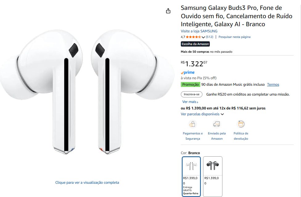 - Samsung Galaxy Buds3 Pro | 5% de desconto – total R$ 1.322,07 – compre aqui