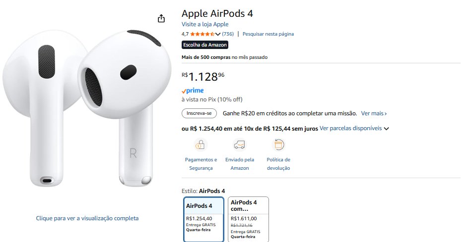 - Apple AirPods 4 | 9% de desconto – total R$ 1.128,96 – compre aqui