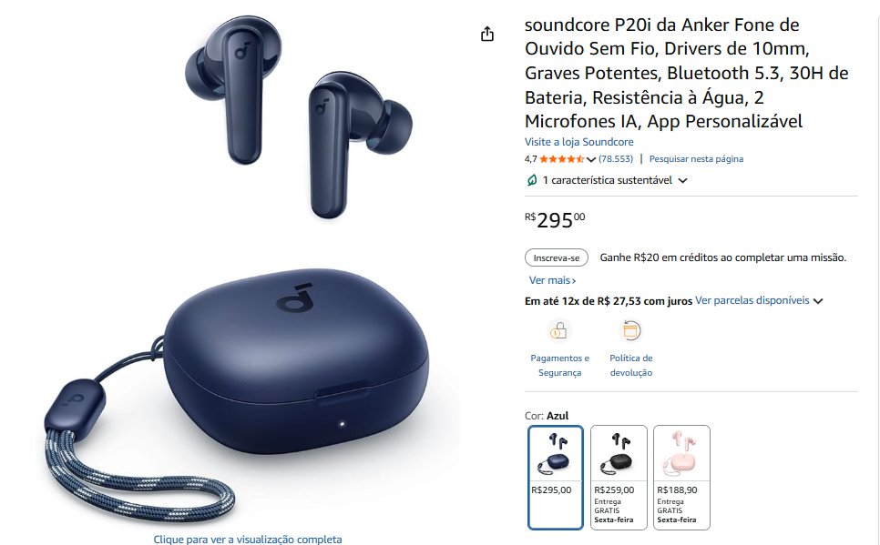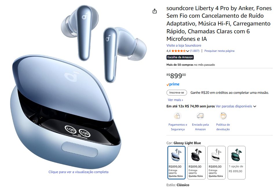 - Fone de Ouvido Soundcore | total R$ 899,00 – compre aqui
