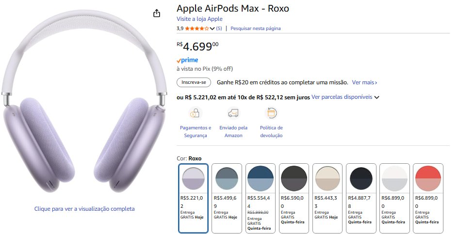- Apple AirPods Max Roxo | 9% de desconto – total R$ 4.699,00 – compre aqui