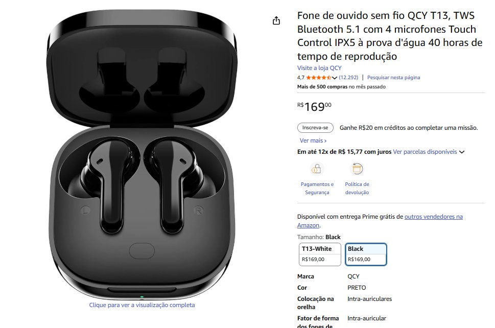 - Fones de Ouvido QCY | total R$ 169,00 – compre aqui