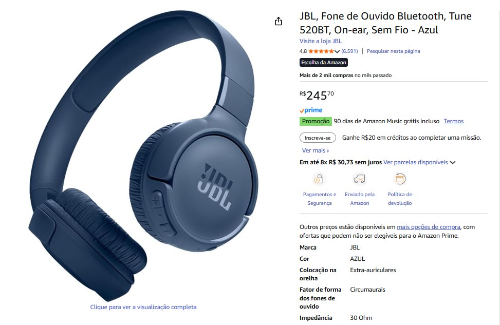 - Fone de Ouvido JBL | total R$ 245,70 – compre aqui