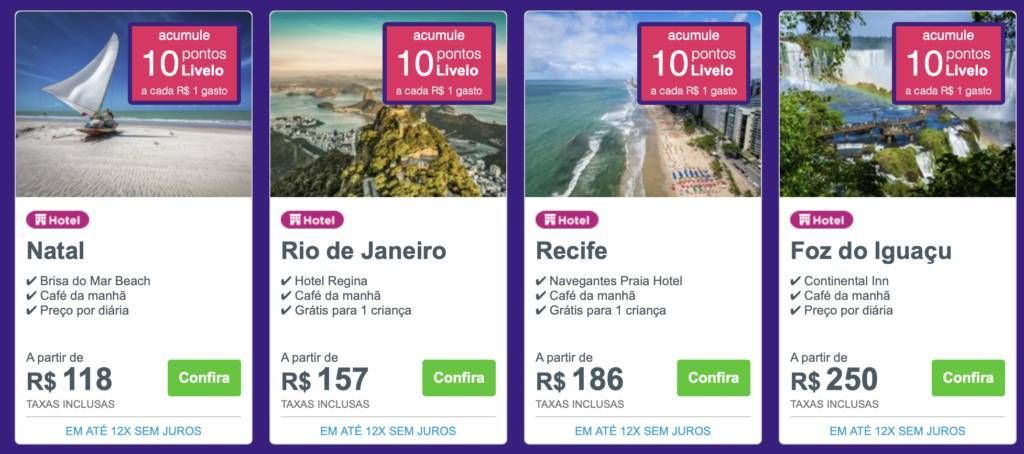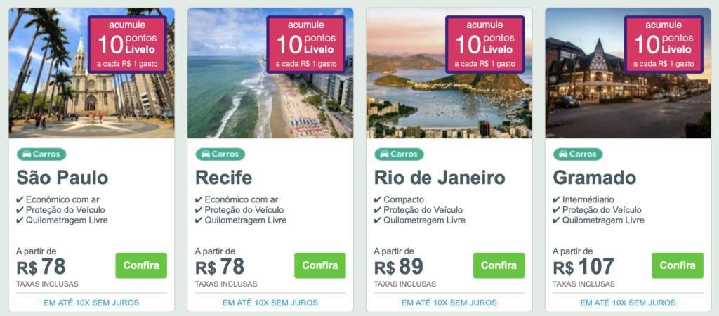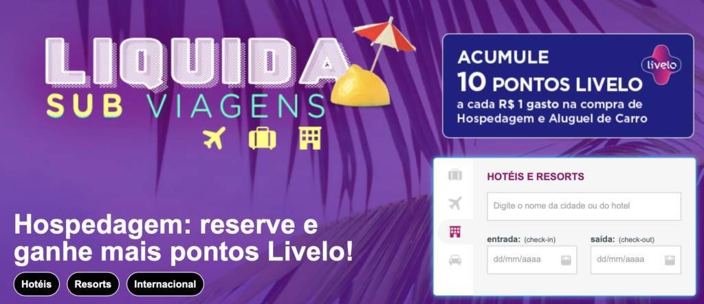 A cada R$1 gasto em hospedagem ou aluguel de carro, o cliente acumulará 10 pontos Livelo (excluindo as taxas).