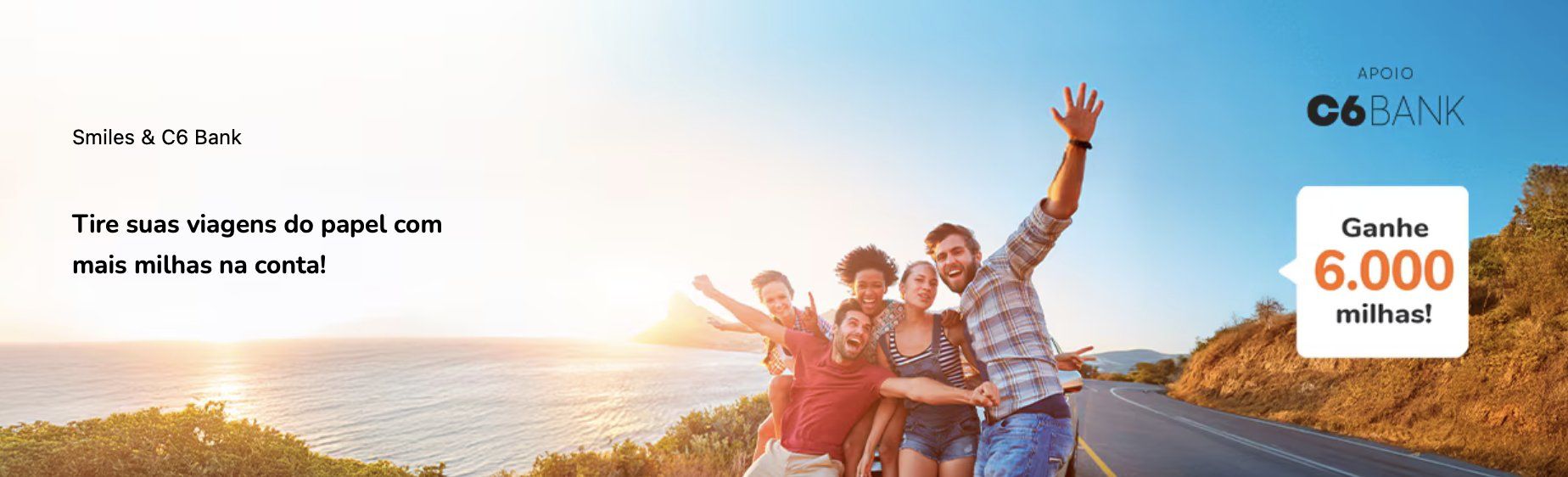 • Para participar da promoção, é necessário ter uma conta na Smiles no mesmo CPF que a conta do C6 Bank;