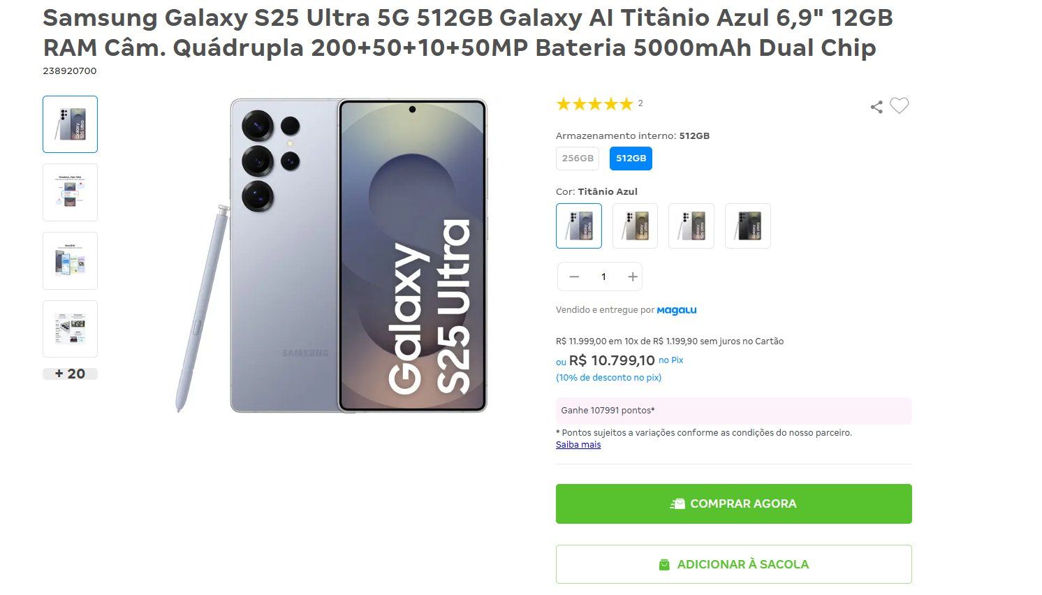 • Smartphone Samsung Galaxy S25 AI Titânio Azul: Até 10 pontos por real gasto – até 18/02/2025 – clique aqui;