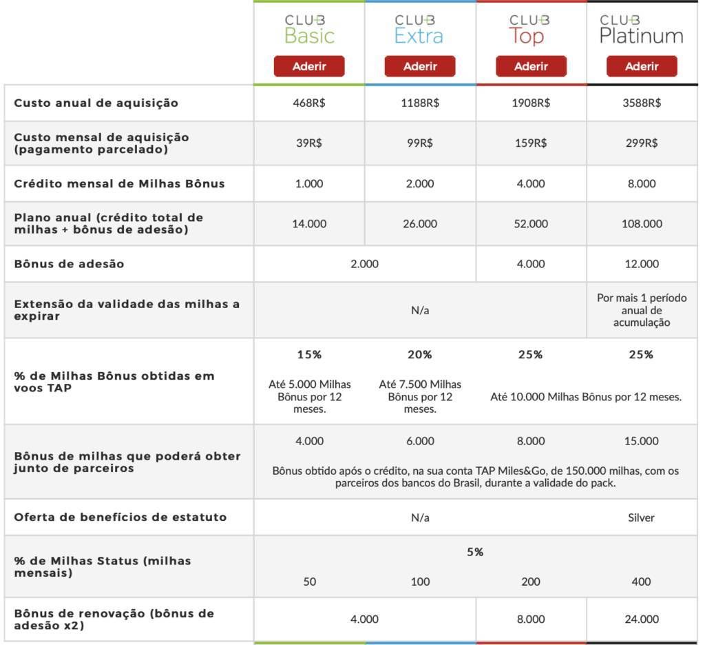 - 100% de bônus para assinantes do Club TAP Miles&Go ou do Clube Livelo.