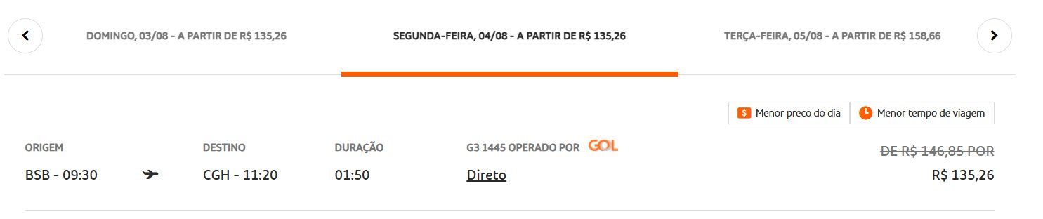 Brasília (BSB) x São Paulo (CGH) – dia 04/08/2025