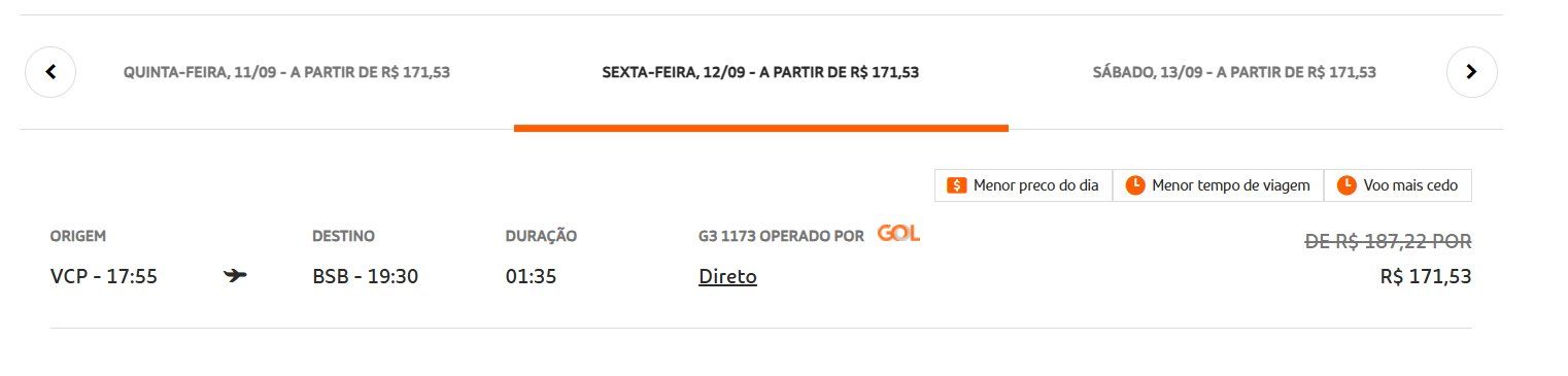 Campinas (VCP) x Brasília (BSB) – dia 12/09/2025