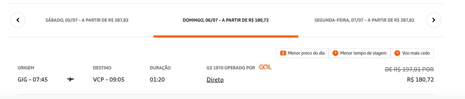 Rio de Janeiro (GIG) x Campinas (VCP) – dia 06/07/2025