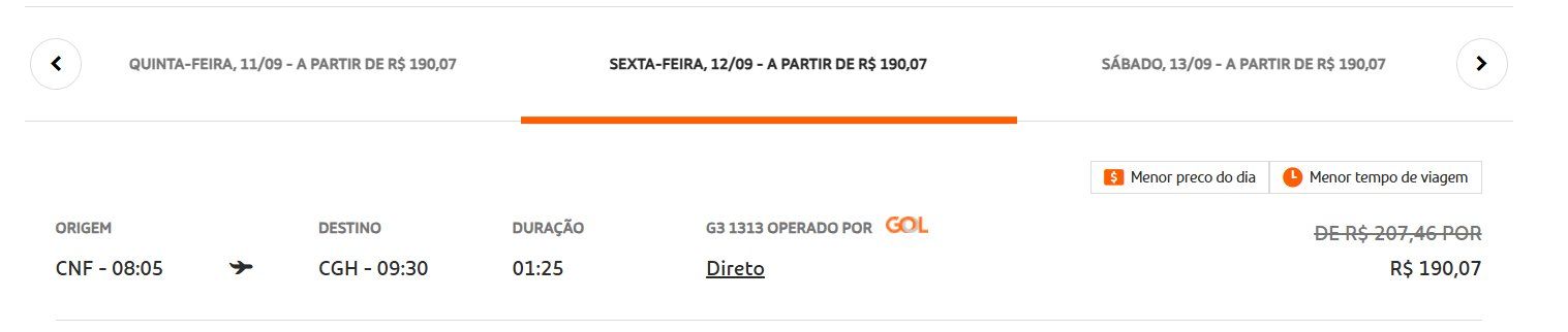 Belo Horizonte (CNF) x São Paulo (CGH) – dia 12/09/2025