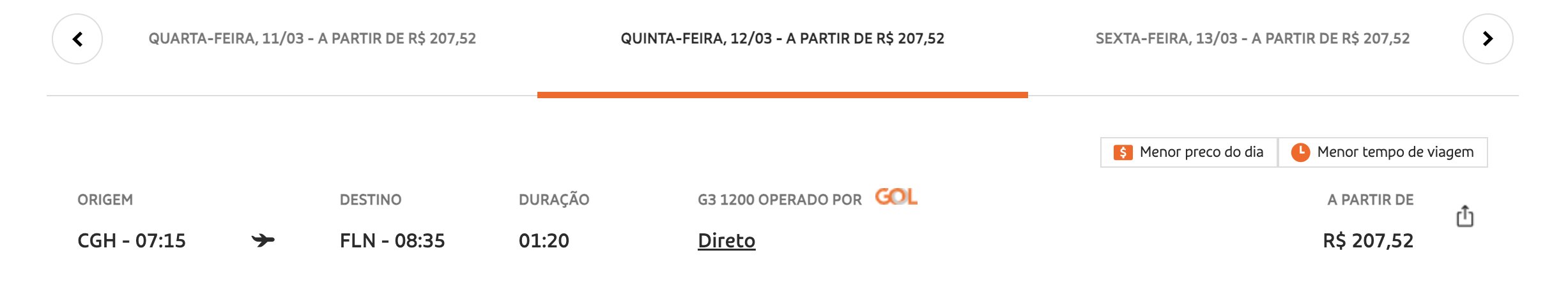 São Paulo (CGH) x Florianópolis (FLN) – 12 de março de 2026