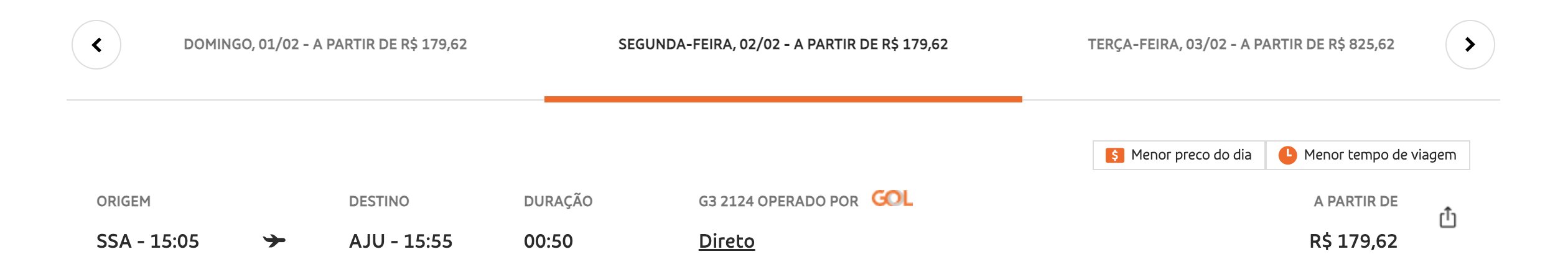 Salvador (SSA) x Aracaju (AJU)  – 02 de fevereiro de 2026