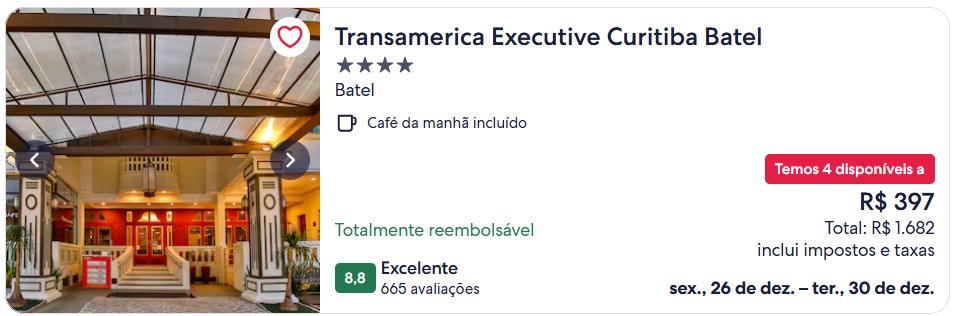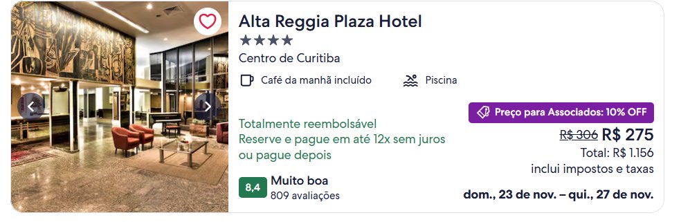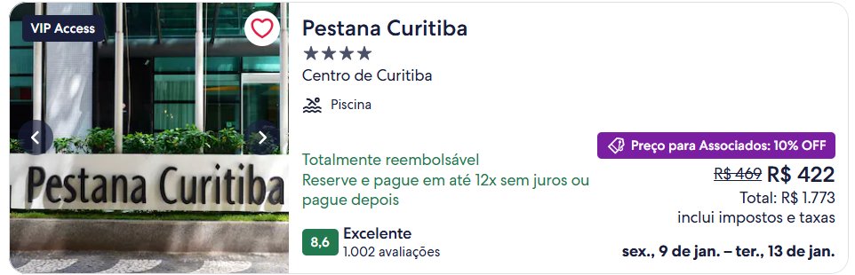 Nesta matéria, vamos apresentar 5 hotéis em Curitiba com até 38% de desconto na Hoteis.com! Na oferta, ainda é possível aproveitar o cupom de 8% off exclusivo do PP, além de parcelar em até 12x sem juros. Confira!