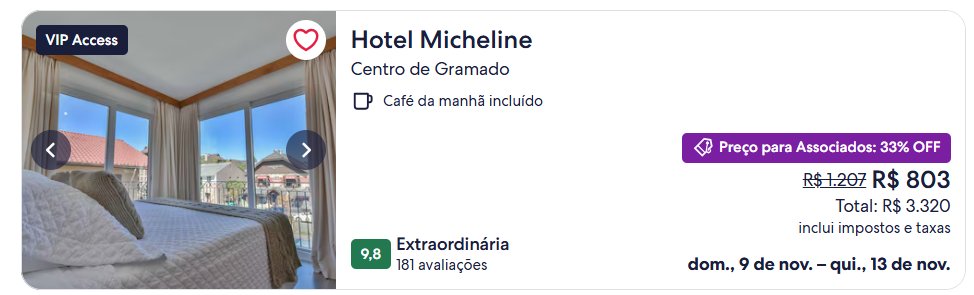 Utilizando o cupom ‘HOTEISPP10’ [sem aspas], você vai receber 10% de desconto em suas reservas na Hoteis.com. A oferta é válida para hospedagens reservadas até dia 10 de novembro com checkout até o dia 31 de março de 2026.