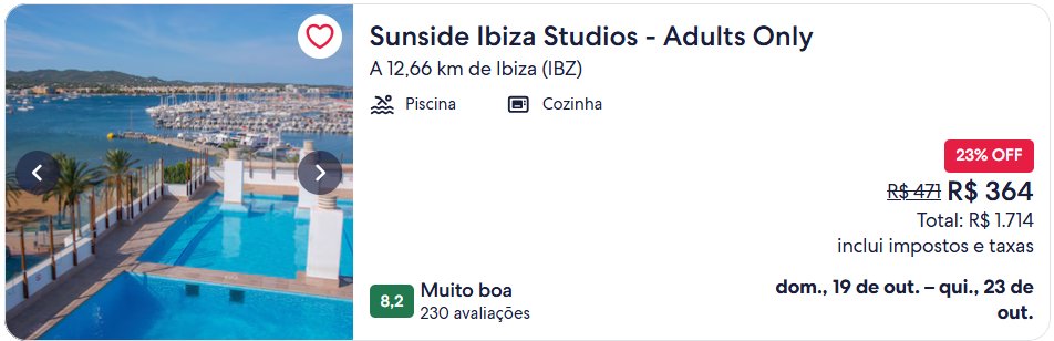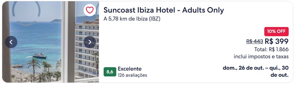 Nesta matéria, vamos apresentar 5 hotéis em Ibiza com até 23% de desconto na Hoteis.com! Na oferta, ainda é possível aproveitar o cupom de 8% off exclusivo do PP, além de parcelar em até 12x sem juros. Confira!