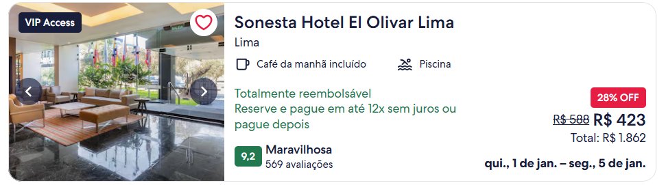 Nesta matéria, vamos apresentar 5 hotéis em Lima com até 53% de desconto na Hoteis.com! Na oferta, ainda é possível aproveitar o cupom de 8% off exclusivo do PP, além de parcelar em até 12x sem juros. Confira!