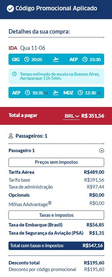 Vale ressaltar que a oferta inclui também voos com conexão, como no exemplo.