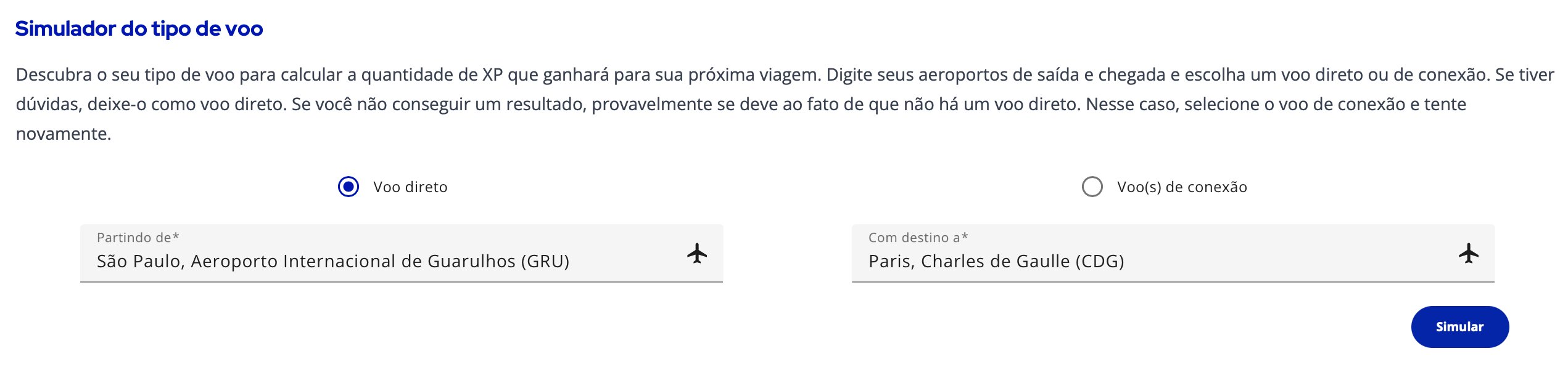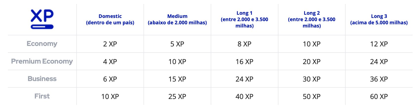 • Pontos de Experiência (XP) -> são a unidade de medida usada para ganhar status como membro Flying Blue.
