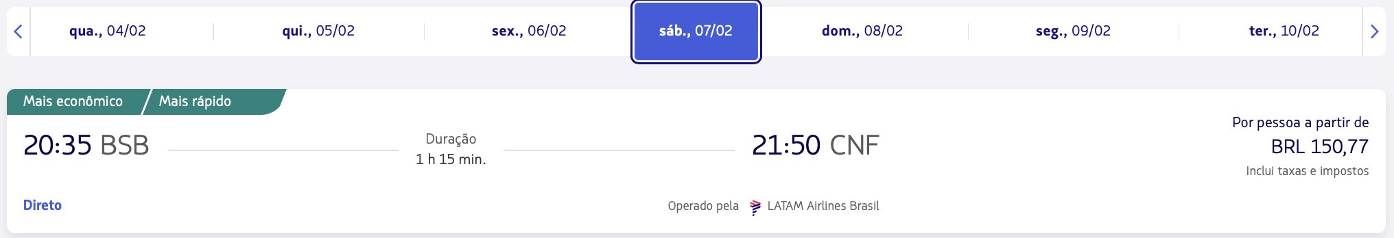 Brasília (BSB) x Belo Horizonte (CNF) – 07 de fevereiro de 2026