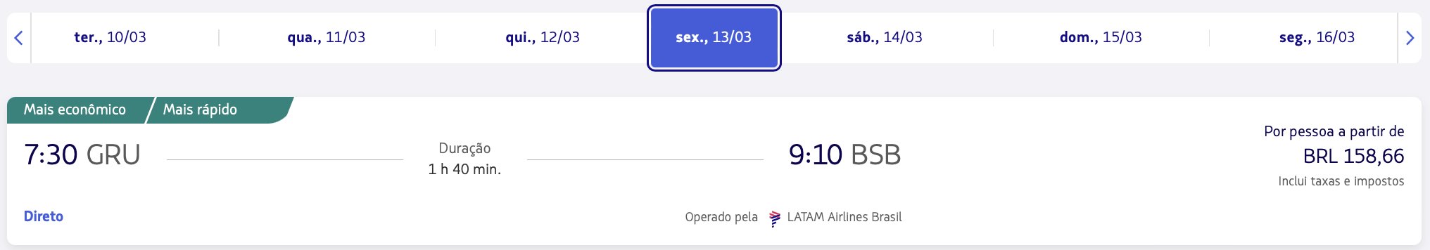 São Paulo (GRU) x Brasília (BSB) – 13 de março de 2026