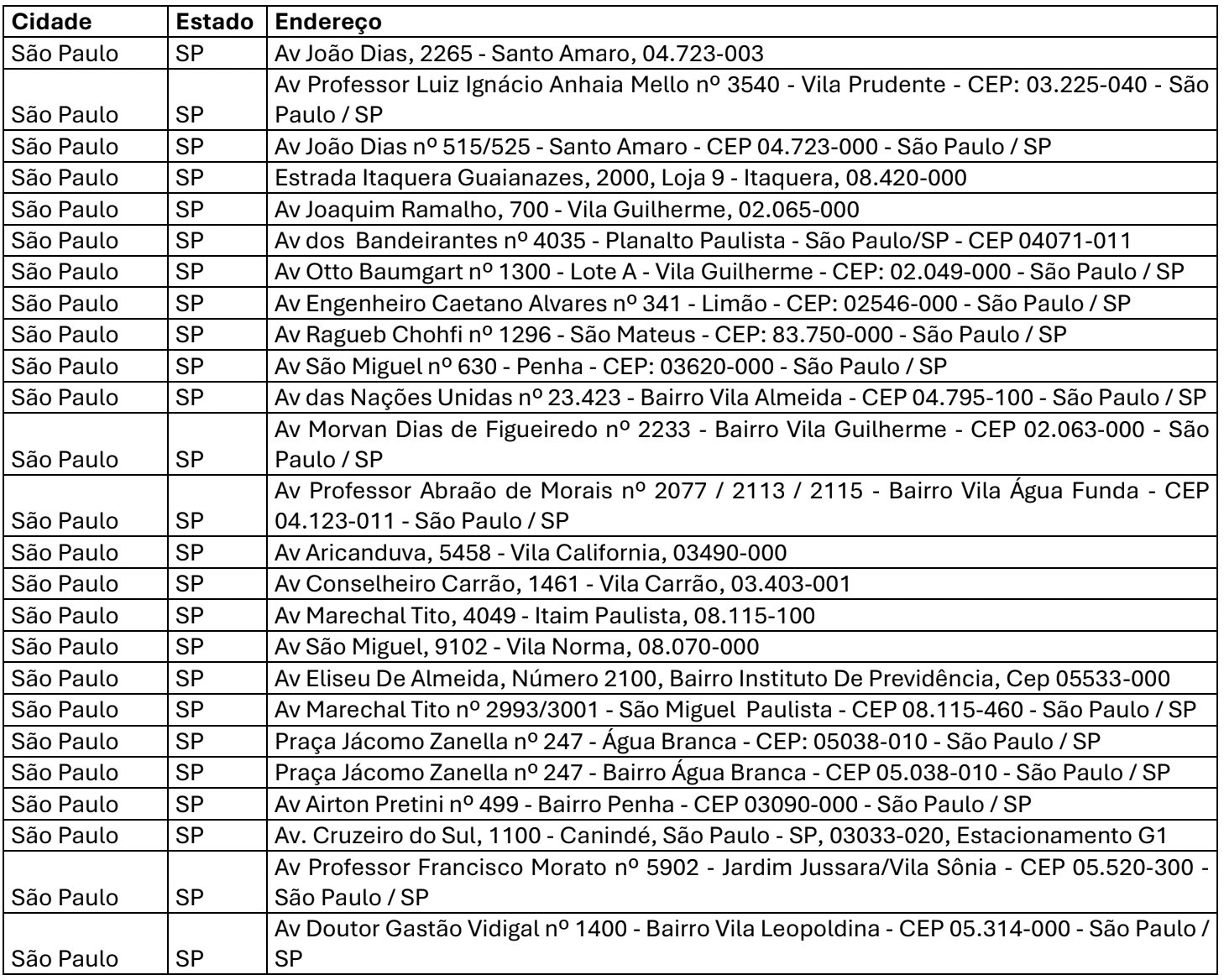 Para a oferta, apenas unidades localizadas na cidade de São Paulo participam. Confira abaixo quais são elas: