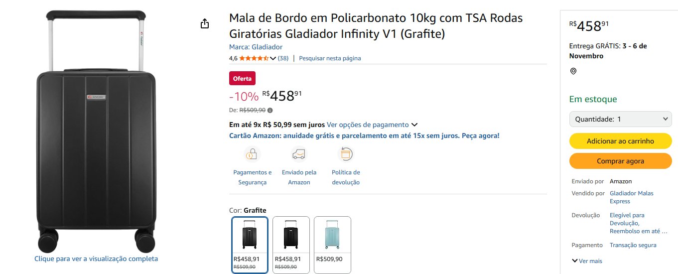 Confira abaixo um exemplo de compra realizada na Amazon. Repare que a pontuação a ser creditada em sua conta não é informada.
