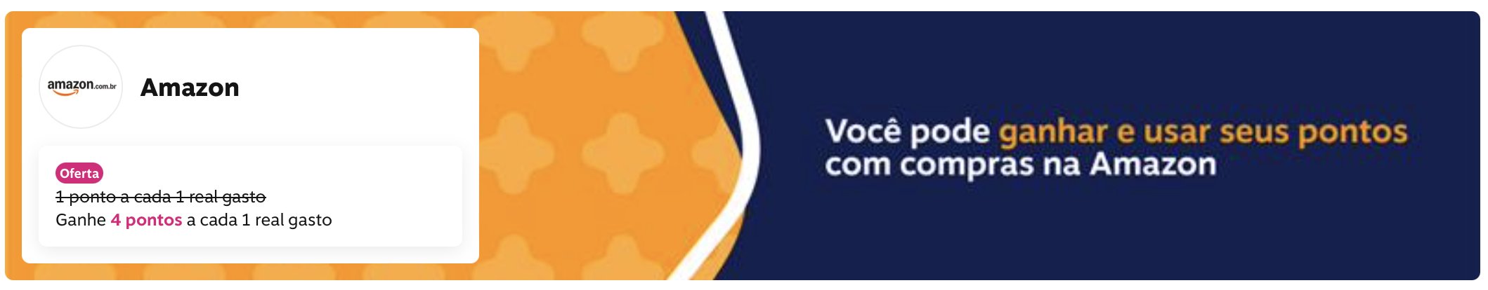Nesta oferta, a Livelo está oferecendo 4 pontos por real para todas as compras realizadas na Amazon. A promoção contempla todas as categorias do site e é válida tanto para assinantes quanto para não assinantes do Clube Livelo.