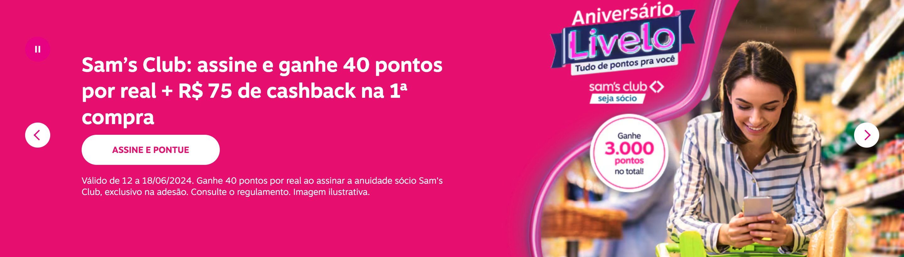 Excelente oportunidade para você que já estava pensando em assinar o Sam’s Club. O programa é o maior clube de compras do Brasil e possui mais de 54 lojas em todos o território nacional. Com a parceria, além de aproveitar todos os benefícios do clube, ainda é possível acumular 40 pontos por real na Livelo com a assinatura, além dos R$ 75 de cashback na primeira compra no Sam’s Club.