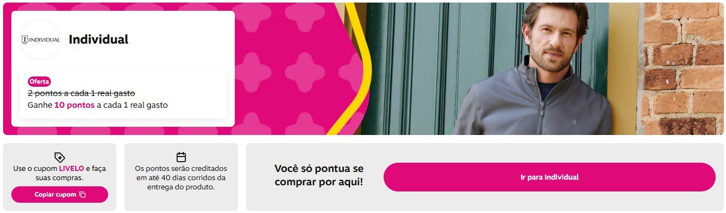 A Livelo está oferecendo até 10 pontos por real gasto na Individual, O Boticário, Centauro e outros parceiros. As ofertas contam com pontuações e validades diferentes. Confira!