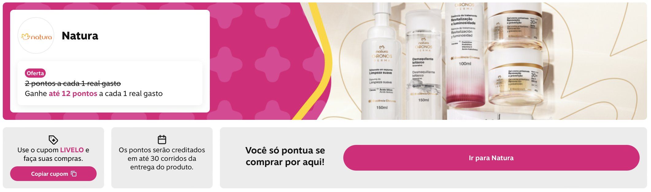 1. Acesse a página da Natura através do site da Livelo;