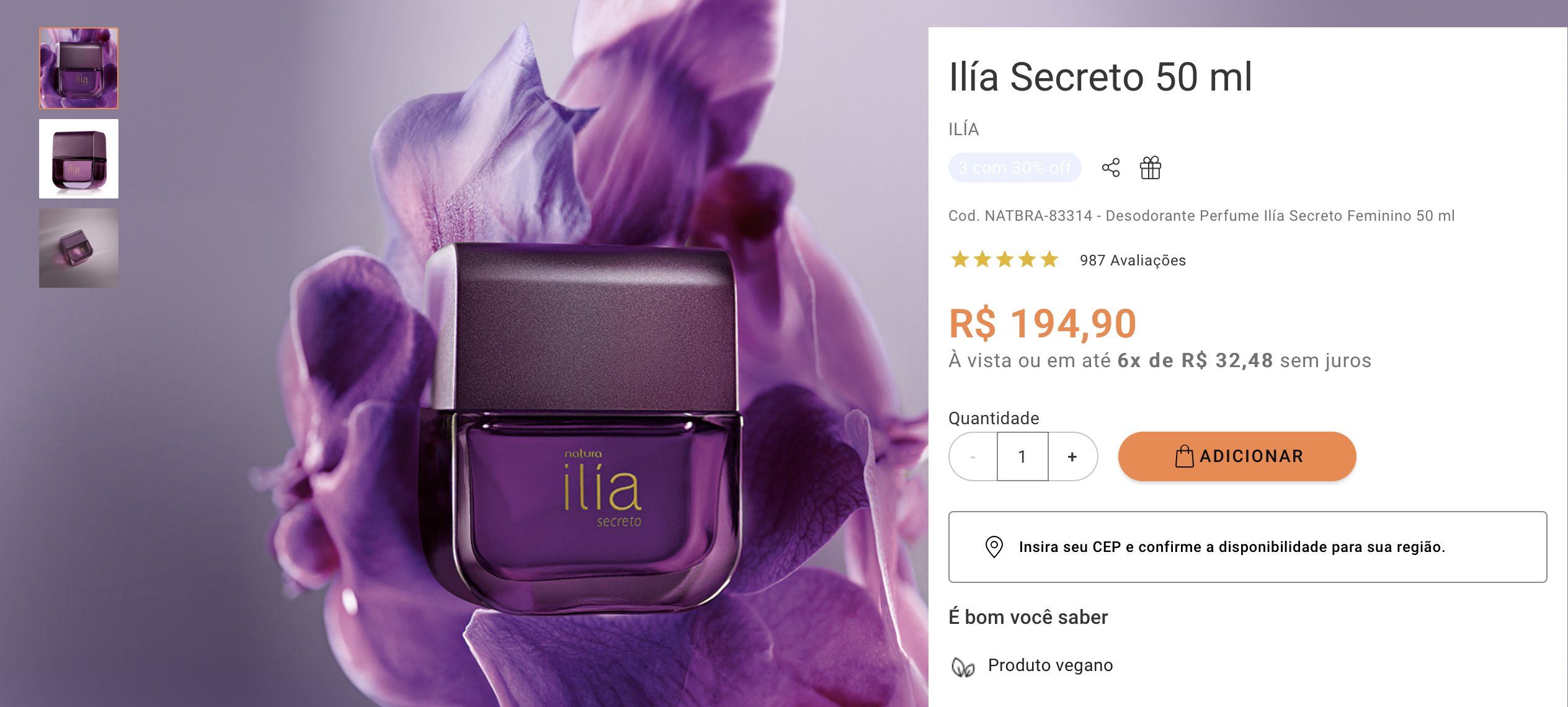 Note que, durante o processo de compra na Natura, não é possível ver a quantidade de pontos que será acumulada.