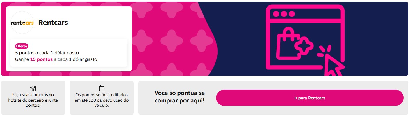 - Rentcars: até 15 pontos por dólar gasto – válido até 20/10/2025 – clique aqui;