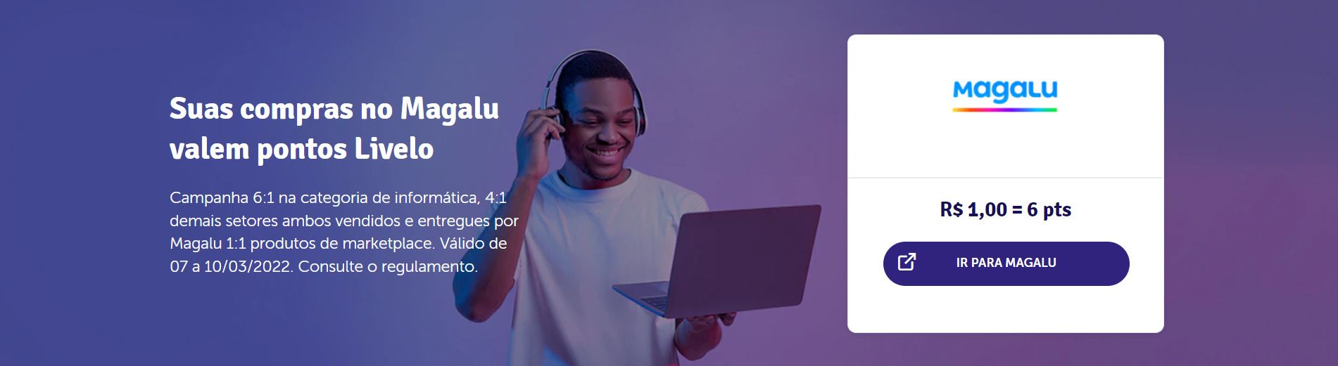 Para participar, acesse o Magalu através do site da Livelo.