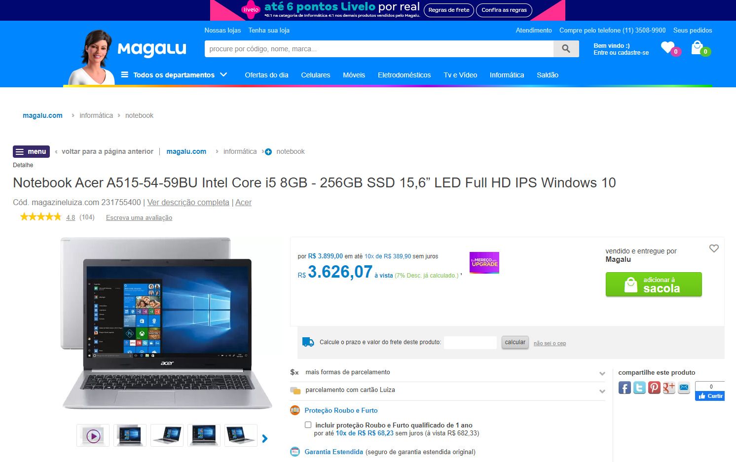3. Escolha o produto desejado e prossiga com a compra.