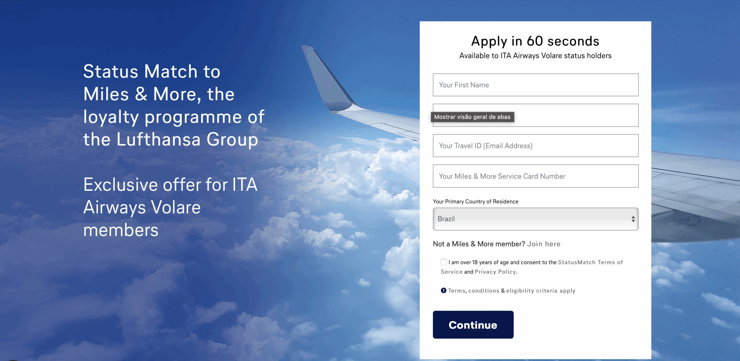 Para aproveitar a campanha e realizar um status match no Miles&More, basta fazer o seguinte: